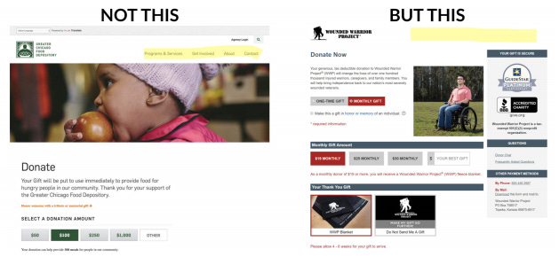 For example take a look at the below screengrab. The second image has nothing else to do on the page other than complete this donation. They also include some trust marks.